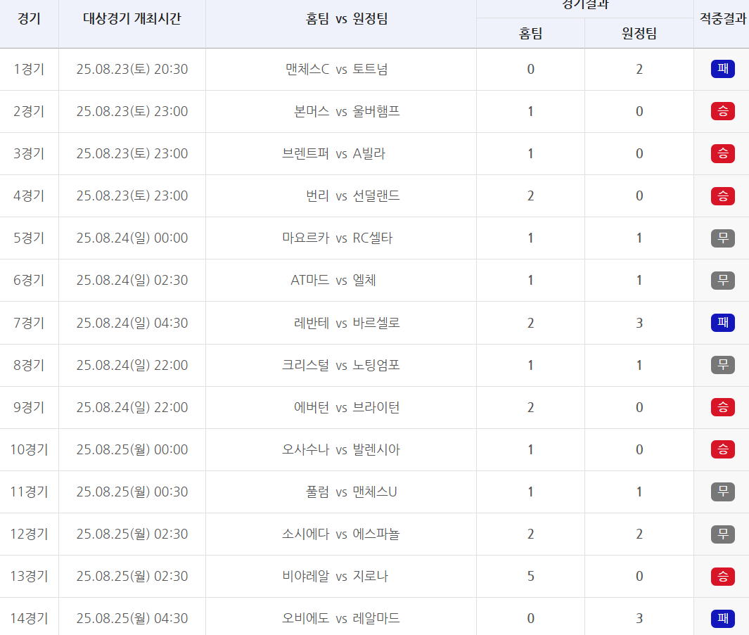 | 2025년 축구토토 승무패 55회차 적중 결과 (1) | 2025.09.01 |